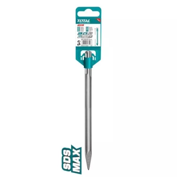 Spitz SDS Max TOTAL – 18 x 400mm este o dalta cu varf conic, ideala pentru lucrari grele de spargere si demolare in beton, piatra sau caramida. Cu lungimea de 400 mm, permite accesul in zone adanci si ofera eficienta crescuta in aplicatii profesionale. Specificatii: Tip produs: Dalta (spitz) Dimensiune: 18 x 400 mm Sistem de prindere: SDS Max Material: Otel tratat, rezistent la socuri Compatibilitate: Ciocan demolator Suprafata lucru: Beton, piatra, caramida Numar bucati/set: 1